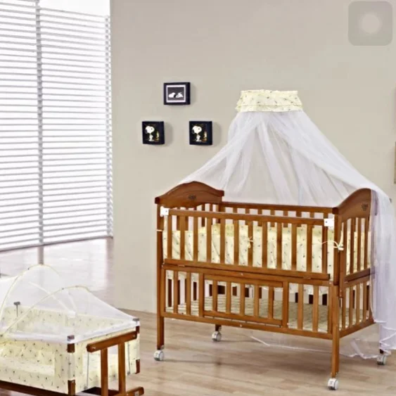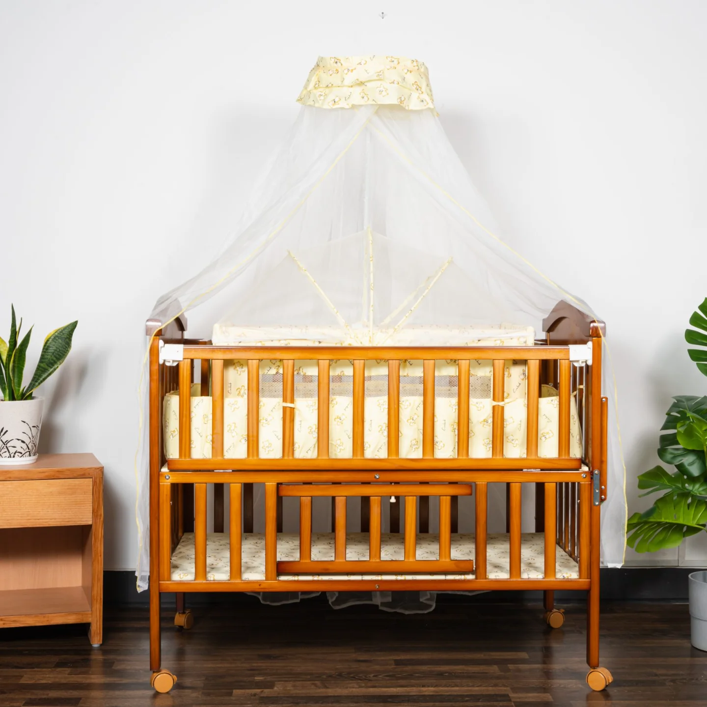 Premium Wooden Baby Crib with Mosquito Net & Storage